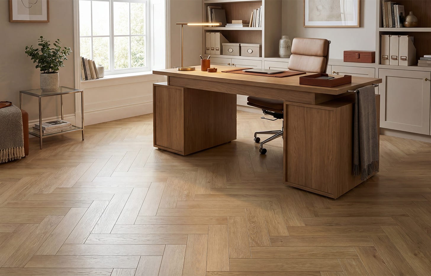 Минерально-каменный ламинат Дуб Миллерфилд — классический образец того, как должен выглядеть паркет в рисунке «Английская елка». Монтаж происходит таким образом, что доски соединяются между собой под углом 90 градусов, образуя четкий рисунок, который похож на рисунок ветви ели. Считается, что впервые такие полы были уложены во дворце Фонтебло во Франции итальянскими мастерами в 16 веке. Времена изменились. Современные полы уже не только красивые, но и намного более практичные и надежные.